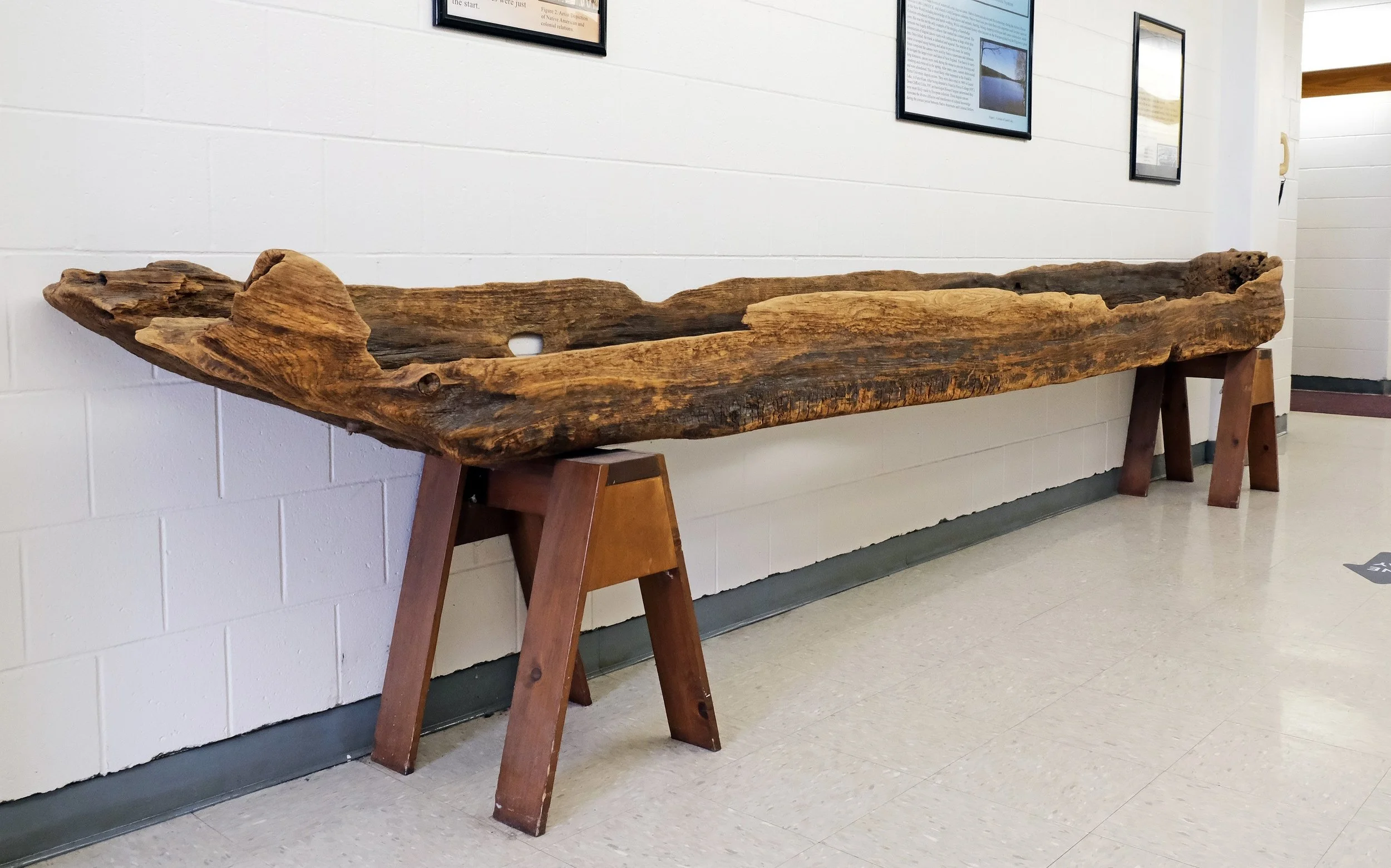 Native American dugout canoe recovered from the bottom of Laurel Lake in Fitzwillian, New Hampshire, radiocarbon dated to between 1660 and 1720 AD.